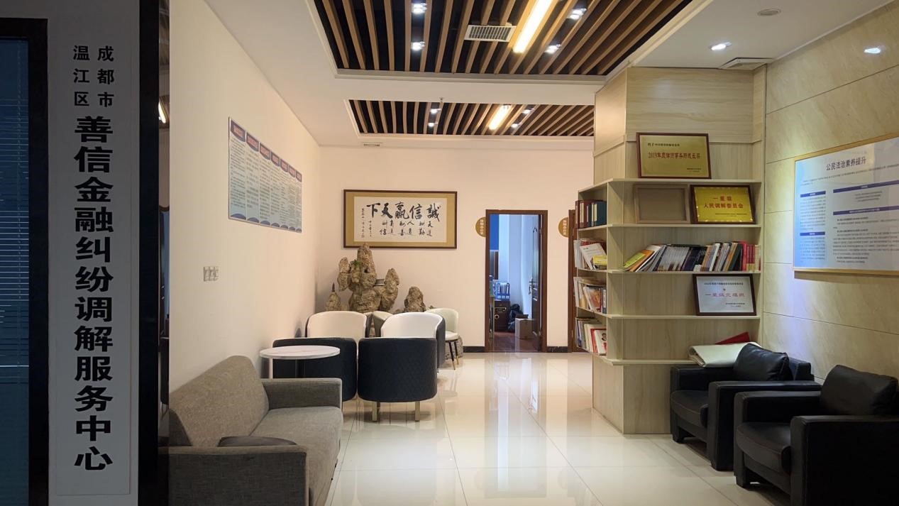 成都市温江区善信金融纠纷调解中心(下称“调解中心”)是为了响应中国法律援助基金会消费信贷纠纷法律帮助专项基金(下称“专项基金”)项目在四川省全面落地,由时任专项基金执行主任徐晓政先生主导,在成都市温江区经司法局、行政审批局同意并设立的。调解中心坐落于成都市温江区天乡路二段855号,拥有近900多平方米的办公场地和先进的办公设备,满足调解员及其他工作人员办公的各种条件。